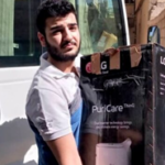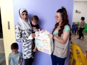 On the right is a photo of Z receiving some donated diapers. She, along with her husband and their three young children, is from Aleppo, a city that bore the brunt of the conflict.  Their home was empty, lacking mattresses, windows, and even a door. Z’s husband struggled to find a stable source of income to provide basic necessities for their family of five, who lived within four bare walls.