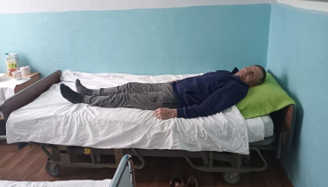 Above: All the hospital could previously offer Andrey (nearly paralyzed through dementia) was an old sofa. Not only is he much more comfortable on the new hospital bed, he is much calmer now his head can be raised to see out the window.