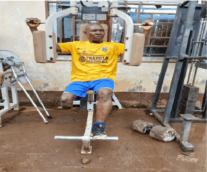 Mohamad Kamara is the captain of the Freetown team. He expressed gratitude for the gym equipment in the shipment: the various machines help him and his team stay in good condition during the rainy season.