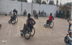 A wheelchair soccer game in progress. Crossroads’ shipment included wheelchairs and crutches that are benefitting amputee sports clubs in four districts of the country.
