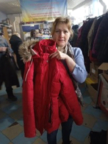 Providing warmth is an essential aim of anyone helping displaced people, and residents are shown here with items from the previous shipment.